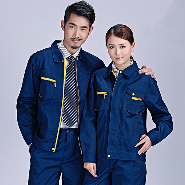 它主要是以深藍色拼黃色為主,不顯單調而又時尚。以滿足8090后對時尚 的渴望,拋棄傳統工作服呆板,僵化的設計理念深受企業員工的喜愛。穿著舒服因為他透氣舒服,耐磨耐穿;并且采用全新的滌棉面料,保證透氣性。