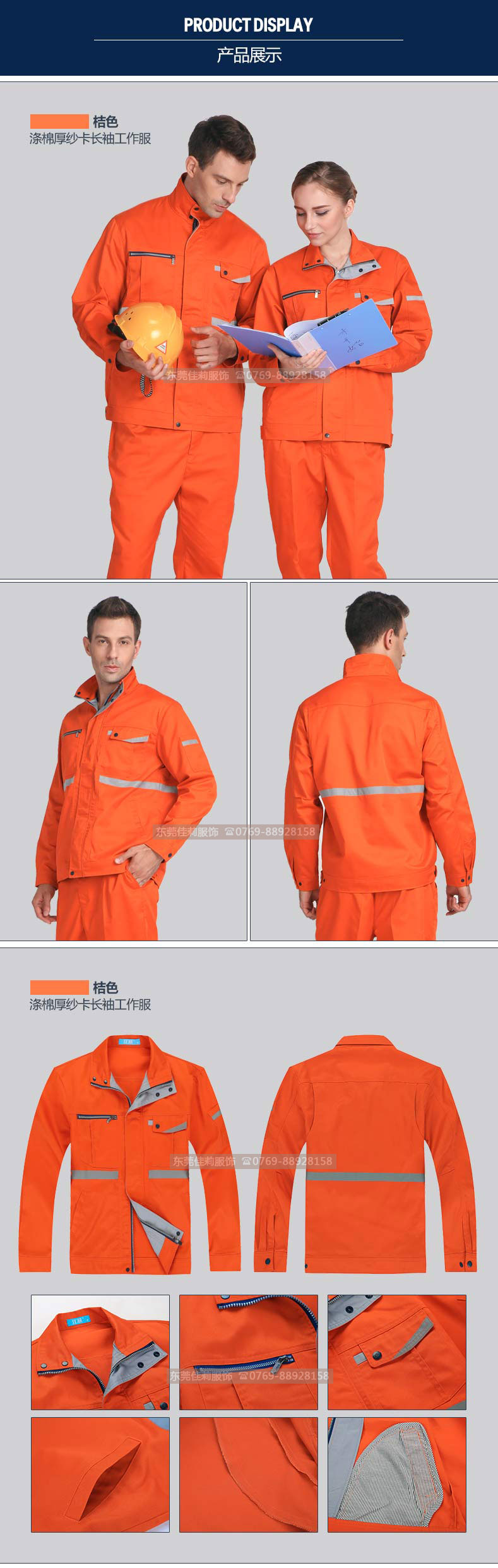 工地工作服定制 反光條橙色工作服套裝JL-GC013